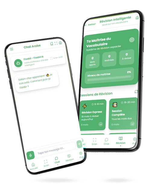 Fisabil n’est pas une application classique. Elle analyse vos textes arabes, extrait le vocabulaire important, génère des exercices personnalisés, vous pose des questions et vous accompagne par l’IA comme un vrai enseignant.
